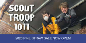 Support Troop 1011 in our 39th annual Pine Straw fundraiser. All proceeds directly support our scouts. The Scouts of Troop 1011 are working as hard as ever to earn their merit badges, attend meetings, enjoy campouts, and serve their community.